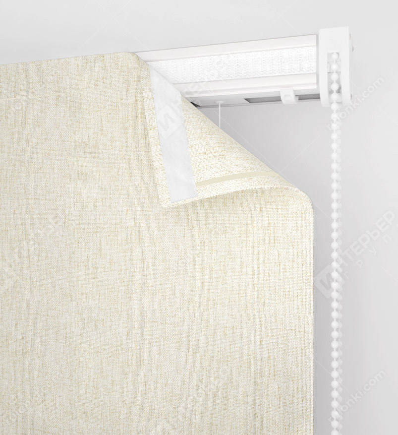 Комплектация: алюминиевый карниз с впрессованной велкро лентой, подъемный механизм ( цепочный или электропривод), тканевое полотно, нижний утяжелитель тканевого полотна, фиберглассовые стержни
