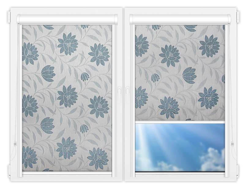 Рулонные кассетные шторы УНИ - Далия-голубой на пластиковые окна
