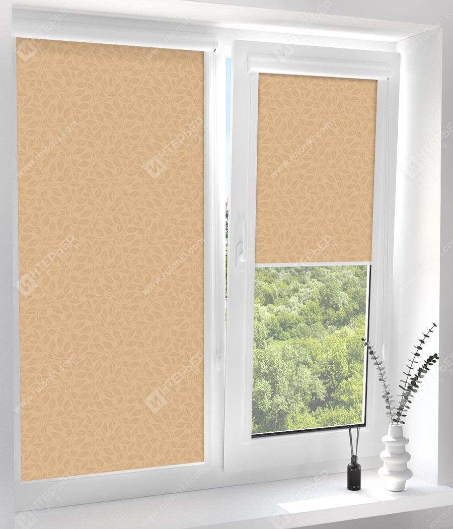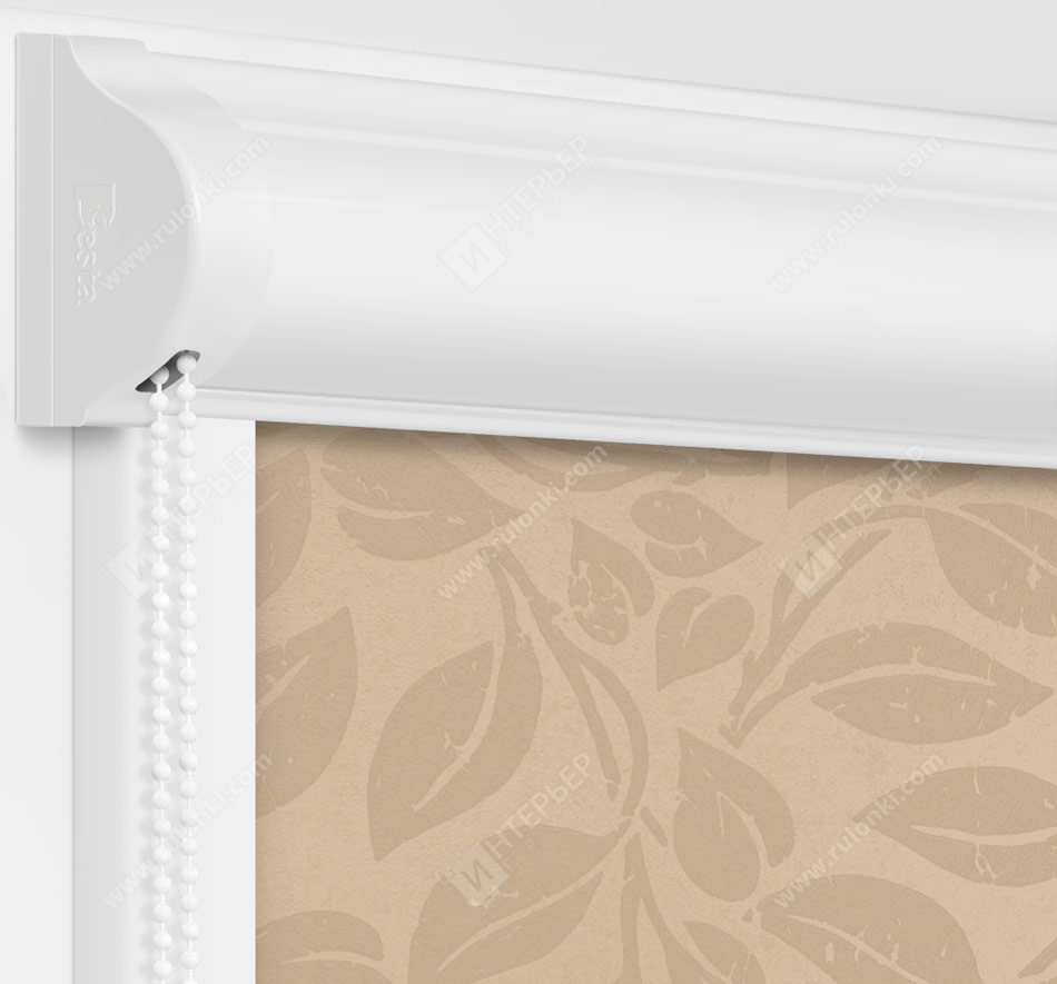Рулонные кассетные шторы УНИ - Лейси бежевый на пластиковые окна