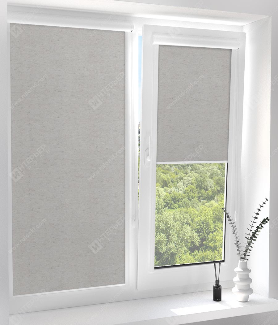Рулонные кассетные шторы УНИ – Мадагаскар лен серый