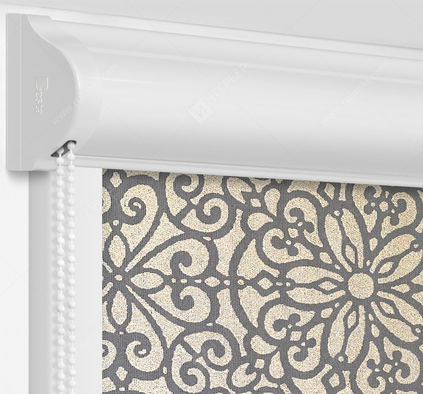 Рулонные кассетные шторы УНИ – Риано серо-бежевый