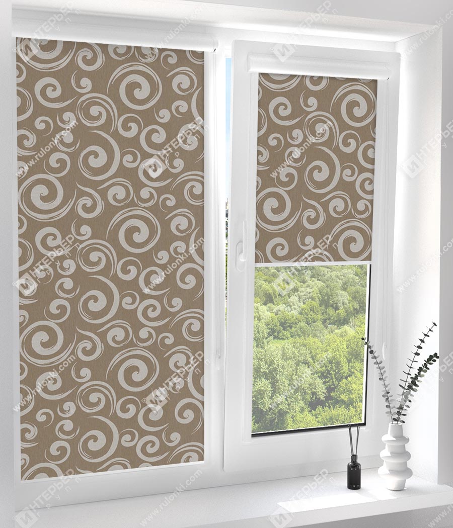 Рулонные кассетные шторы УНИ - Сейшелы коричневый на пластиковые окна
