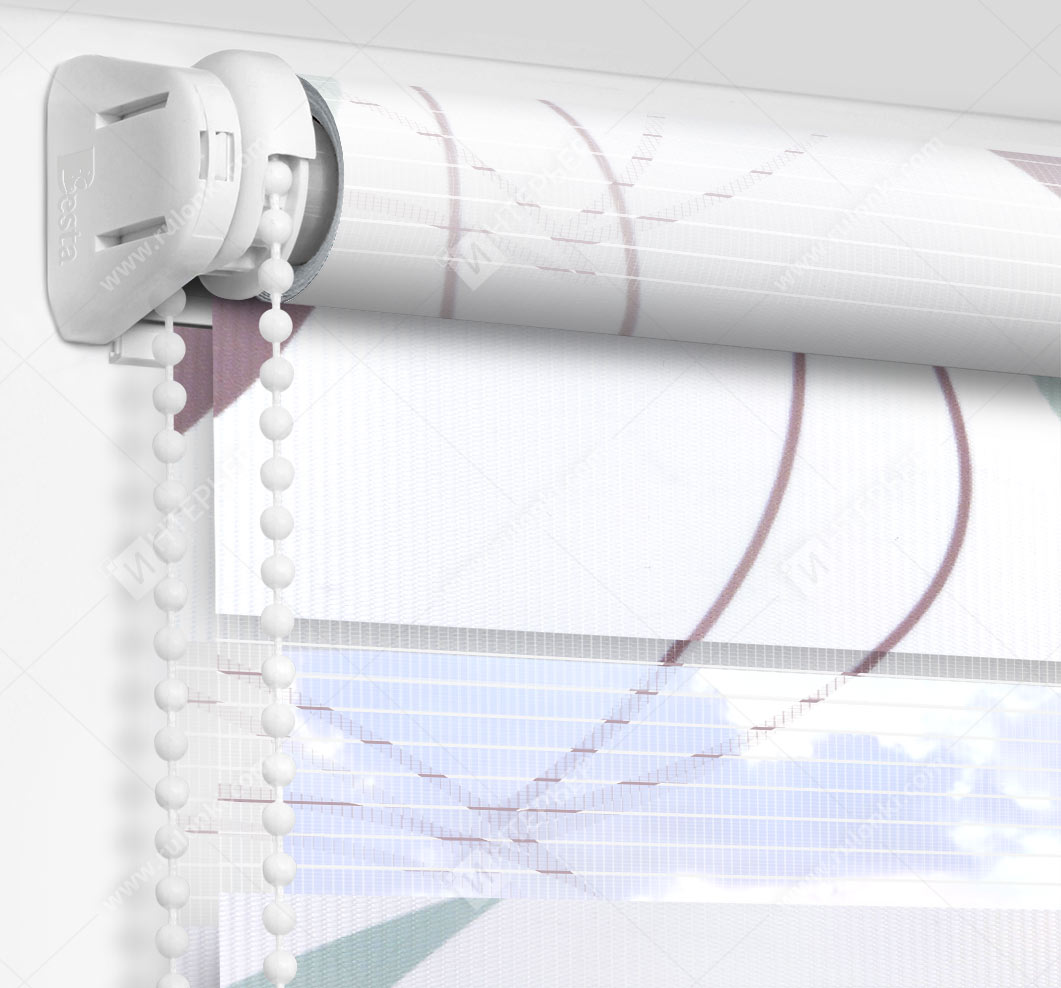Рулонные шторы Зебра работают следующим образом: полоски ткани смещаются так, чтобы совпали светлые или темные слои, образуя, плотное или более прозрачное полотно. Так обеспечивается ночной или дневной режим затемнения. Также можно поднять шторное полотно полностью, открывая окно. По умолчанию - цвет фурнитуры белый.