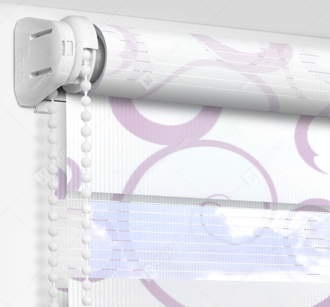 Рулонные шторы Зебра работают следующим образом: полоски ткани смещаются так, чтобы совпали светлые или темные слои, образуя, плотное или более прозрачное полотно. Так обеспечивается ночной или дневной режим затемнения. Также можно поднять шторное полотно полностью, открывая окно. По умолчанию - цвет фурнитуры белый.