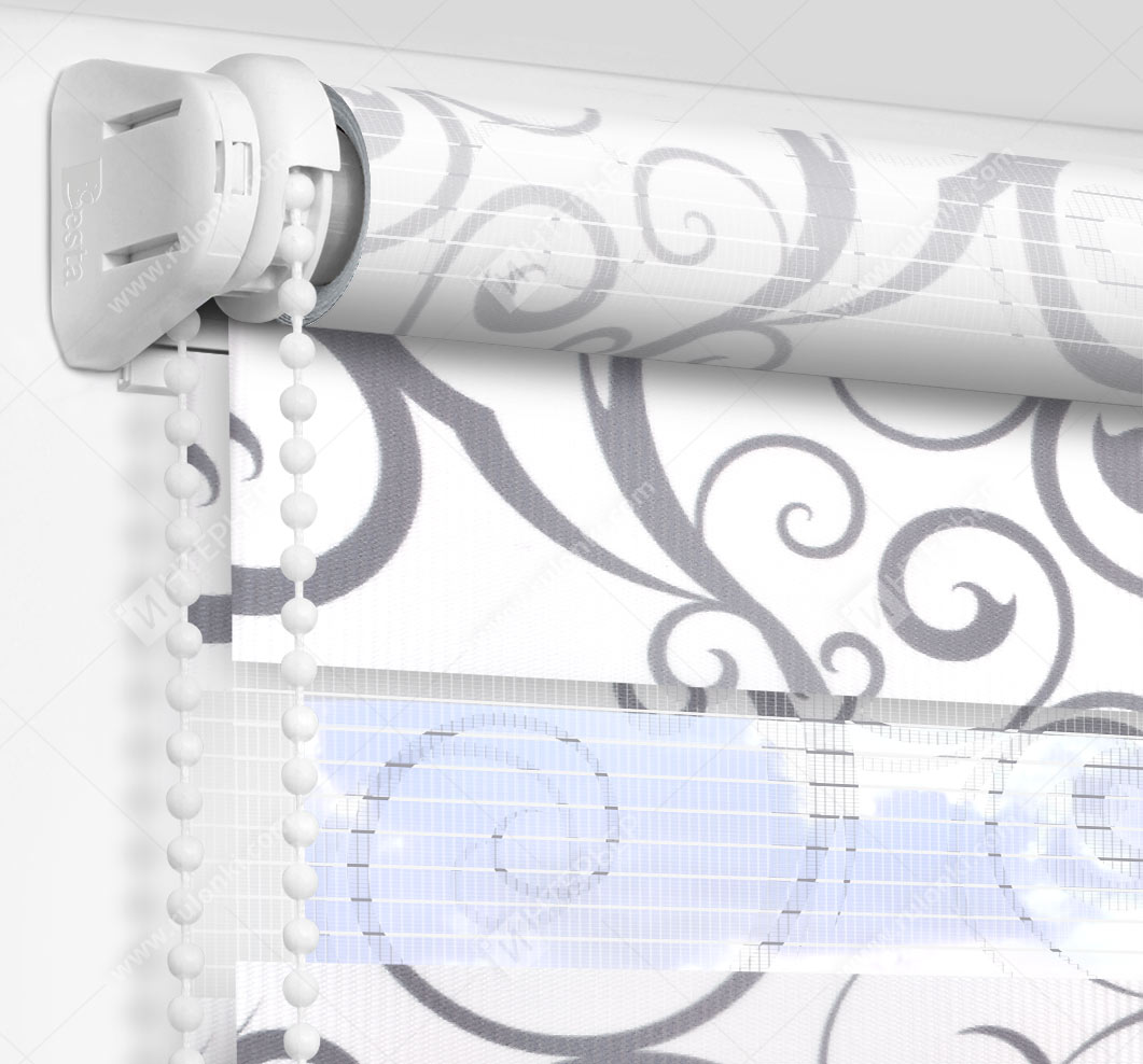 Рулонные шторы Зебра работают следующим образом: полоски ткани смещаются так, чтобы совпали светлые или темные слои, образуя, плотное или более прозрачное полотно. Так обеспечивается ночной или дневной режим затемнения. Также можно поднять шторное полотно полностью, открывая окно. По умолчанию - цвет фурнитуры белый.