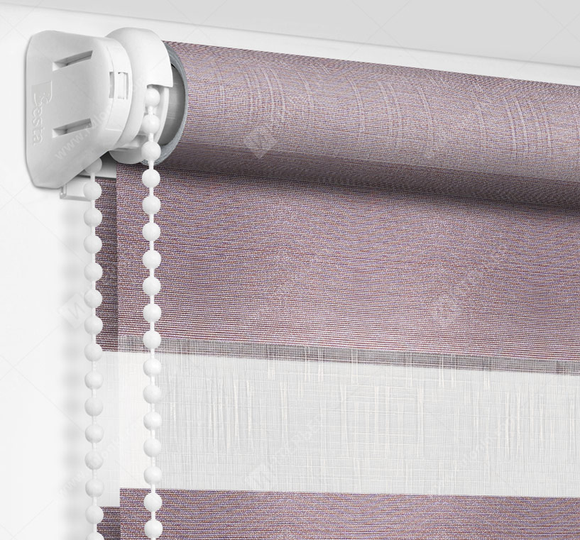 Рулонные шторы Зебра работают следующим образом: полоски ткани смещаются так, чтобы совпали светлые или темные слои, образуя, плотное или более прозрачное полотно. Так обеспечивается ночной или дневной режим затемнения. Также можно поднять шторное полотно полностью, открывая окно. По умолчанию - цвет фурнитуры белый.