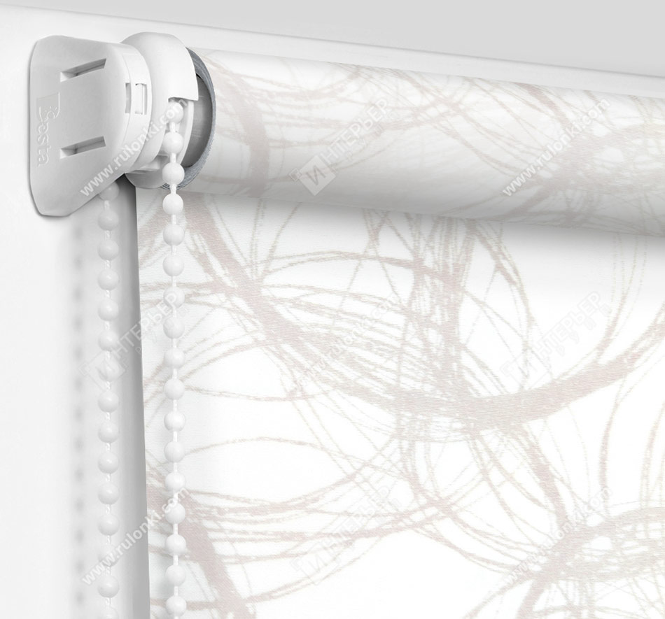 Комплектация: вал с тканью и цепью управления, фиксатор цепи и системы крепления - без сверления (на двусторонний скотч) или на саморезы. По умолчанию - цвет фурнитуры белый.