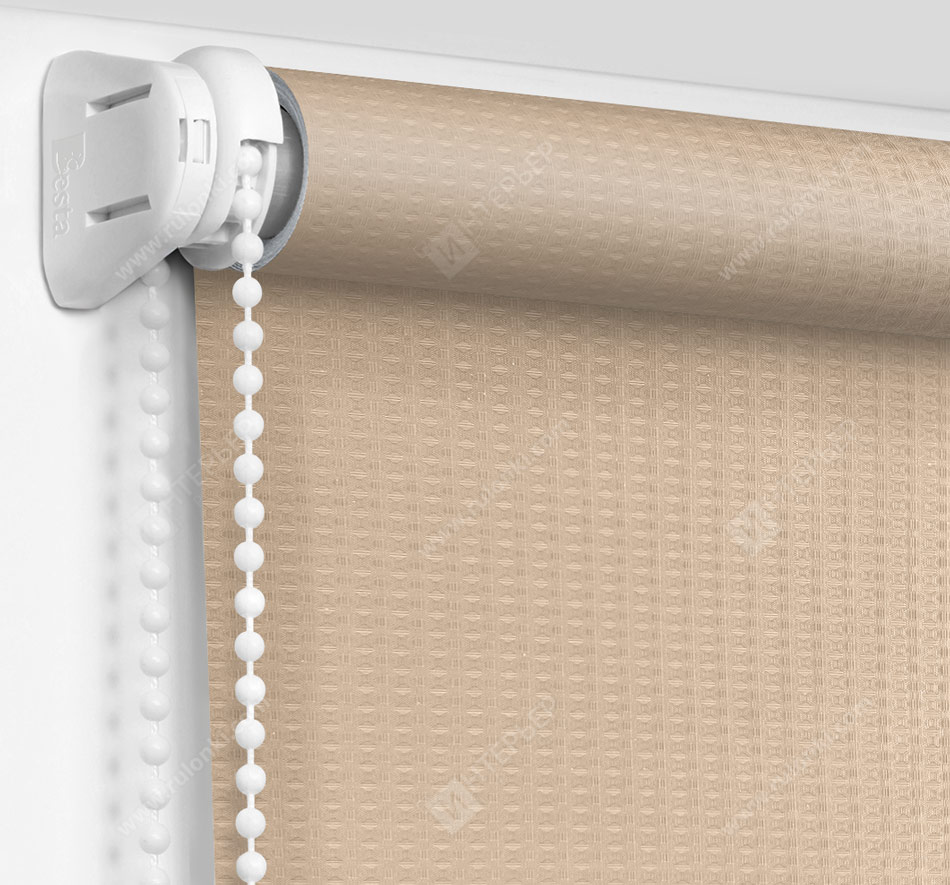 Комплектация: вал с тканью и цепью управления, фиксатор цепи и системы крепления - без сверления (на двусторонний скотч) или на саморезы. По умолчанию - цвет фурнитуры белый.