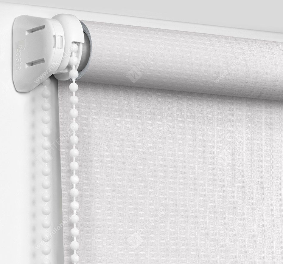 Комплектация: вал с тканью и цепью управления, фиксатор цепи и системы крепления - без сверления (на двусторонний скотч) или на саморезы. По умолчанию - цвет фурнитуры белый.